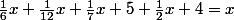1/6 x + 1/12x+ 1/7x +5+1/2x+4