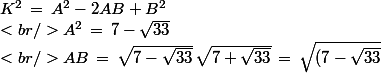 K²=(V(7-V33))²-2(V(7-V33)(V(7+V33))+(V(7+V33))²