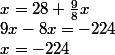 La différence de deux nombres, x et y, est de 28. Le nombre y correspond aux huit neuviemes du nombre x. Quels sont les deux nombres ??