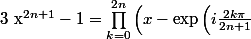 \right)\\<br />\;\;\;\;\;\;=(x-1)\prod_{k=1}^{2n}\left( x-\exp\left(i \frac{2 k \pi}{2 n+1}\right)\right))