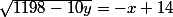 Zi = racine de (1198-10Yi). Une équation de la droite d'ajustement affine de Z en x par la métohde des moindres carrés est alors : Z=-x+14