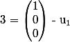 = \begin{pmatrix} 1 \\ 0 \\ 0 \end{pmatrix} - \frac{1}{ 3} ( \begin{pmatrix} 1 \\ 0 \\ 0 \end{pmatrix} \ \begin{pmatrix} 1 \\ 1 \\ 1 \end{pmatrix}) u_1)