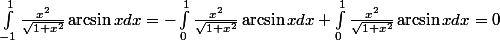 bonjour je n'arrive pas a calculer l'intégrale de -1 a 1 de (x^2arcsin[x])/(Sqrt(1+x^2))