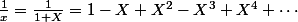 est 1 - X + X^2 - X^3...tu utilises ça dans le DL de f et tu as le DL de f(1/x)