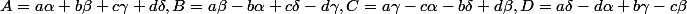 (\alpha^{2}+\beta^{2}+ \gamma^{2}+\delta^{2})=(A^{2}+B^{2}+C^{2}+D^{2}))