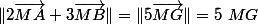 +3 (\vec {MG} +\vec {GB})=5\vec {MG} +2\vec {GA} +3\vec {GB}=5\vec {MG})