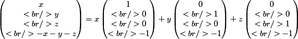 - exprimer ce vecteur comme combinaison linéaire de x, y et z :