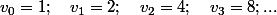 1; 2; 4; 8; 16; 32; 64; 128; 256; 512; 1024; 2048; 4096; 8192;.....