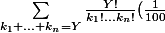Excusez moi, mais je suis un peu un manche en math, qu'est ce que cette somme signifie ? Que somme t'on exactement ?, qu'elle est la variation ? les k1..kn sont fixes ? k1 +..+ kn = Y et kn >= 1, soit, mais des tas de valeurs sont possibles.