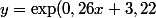 Voilà là où j'en suis : y=e^(0,26*x) + e^3,22