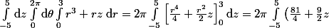 \mathrm{d}z = 2 \pi \left[ \frac{81}{4}z + \frac{9}{4}z^2 \right]^5_{-5} = .......)