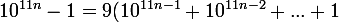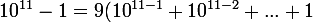^n-1=(10^{11}-1)[(10^{11})^{n-1}+...+1])
