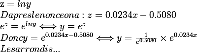 il faut écrire y sous la forme y=Ae^(Bx)(donner A et B arrondis à 10^-4)