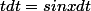 ensuite je remplace t par sinx car j'ai posé t= sinx