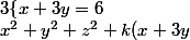 Sauf qu'il y a des tas de sphères différentes dont l'intersection avec le plan x+3y=6 donne ce même cercle (essaye de le visualiser...) et, pour obtenir ces différentes sphères, on peut avoir l'idée de dire que, pour tout réel k, le système ci dessus est équivalent à :