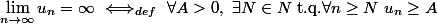 Comme B >= A, on en déduit que pour tout n >= N, un >= B >= A, et donc le même N convient.