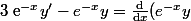 - Sinon, une méthode pour ces équation différentielle est de chercher un facteur intégrant. Ici, cela consiste à multiplier par exp(-x), pour remarquer que