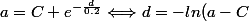 a=cts+exp(-d/0.2) a est une autre constante, d l'inconnue. Je cherche à faire sortir d pour avoir d=....