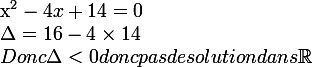 Dans ce cas là, tu sais que le signe de x²-4x+5 est toujours positif et donc cela ne peut jamais être égal à -9.