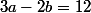 on remplace dans la première ce qui donne 3b+15-2b=12 d'où b=-3