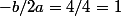 Bahvqur l'axe de symétrie de ta courbe coupe la courbe en son sommet donc x=1 ,