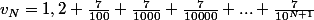 "La suite (vn) est définie par vn=1.27777...7 avec n décimales consécutives égales à 7.