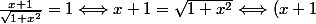 ^2 = x^2+1 \Longleftrightarrow x^2+2x+1 = x^2+1 \Longleftrightarrow 2x = 0 \Longleftrightarrow x = 0)