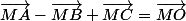 voila l'affaire : le points O est barycentre du système de points pondérés {(A;1)(B;-1)(C;1)}
