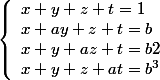 ou x,y,z, et t sont les inconnues et ou a et b sont des parametres ( nb reels)