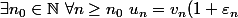 Ça correspond à la définition que j'ai citée, mais sous une forme moins "primitive" (en déroulant le fait que la suite epsilon tend vers 0 on fait sortir du "pour tout epsilon, ..."). D'ailleurs le n0 dans ta définition est plutôt superflu, il sert juste à intégrer le fait que les deux suites peuvent ne pas commencer au même rang.