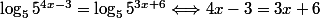 ^{x+2}\Longleftrightarrow 5^{4x-3}=5^{3x+6})