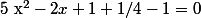 x^2 - 2x + 1/4 = 0