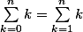 -\sum_{k=0}^{n}(k)=\sum_{k=1}^{n+1}(k)-\sum_{k=1}^{n}(k))