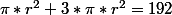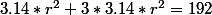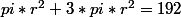 Sachant que la surface totale est de 192 alors elle est la somme de la surface de la parcelle circulaire et de la parcelle carrée soit