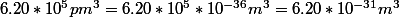 ^3=(10^{-12})(10^{-12})(10^{-12})m^3=10^{-36}m^3)