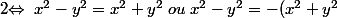 =0[\Pi]\; et \;z'=x^2-y^2 \Leftrightarrow \; x^2-y^2= (x^2+y^2) e^{i k\Pi}\;(K\in\mathbb{Z}))