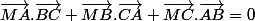 En posant : H l'intersection de deux hauteurs => La troisième droite est une hauteur et comme H rentre dans l'expression du produit scalaire imposé alors les 3 hauteurs sont concourantes