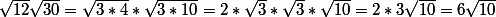 merci ampholyte je pense avoir compris pour racine carrée de 12* racine carrée de 30 j ai fais rc 4*3*rc10*3=10*4 rc de 3=40 rc de 3