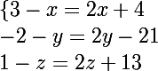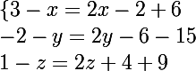 =\(2x-2\\2y-6\\2z+4\)-\(-6\\15\\-9\))