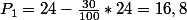 Reduc de 30% => prix robe est 24*(1-30/100)=24*0.7=16.8