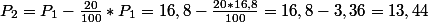 Reduc de 20% => prix robe est 16.8*(1-20/100)=16.8*0.8=13.44