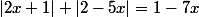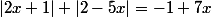 (Je vais faire une tableau de valeur absolue mais je ne sais pas quoi faire de ce 3, j'ai pensé à écrire |2x+1|=|3-2-5x|, esce juste?)