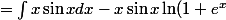 L'écriture integrale(xsinx)- [xsinxln(1+e^x)] +[(sinx+xcosx)ln(1+e^x)] semble