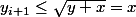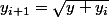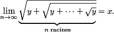 La croissance est évidente (pour passer de y_i à y_{i+1} on peut remplacer le dernier y dans la suite de racines emboitées définissant y_i par