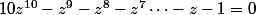 L'égalité : 10z^10-z^9-z^8-z^7...-z-1 = 0 est possible si z^9, z^8...,z,1 ont même argument?