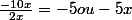 nt ?===> ils se simplifient oui car il y a un signe multiplié entre -10 et x au numérateur et entre 2 et x au dénominateur. merci