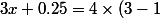 3x car on nous indique qu'on multiplie ce nombre par 3, +0.25 car on lui ajoute 0.25. 3-1 car on dit qu'on ote 1 à ce nombre et 4 car on le multiplie par 4