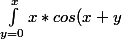 int_{y=0}^x x*cos(x+y)dy=[x/y*sin(x+y)]_0^x ??