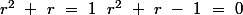 Tout réecrire selon \ ax^2\ +\ bx\ +\ c\ =\ 0\ c'est plus facile r2+r=1 exemple la derniere r2+r = 1 deviens \ r^2\ +\ r\ =\ 1\ =\ r^2\ +\ r\ -1\ =\ 0\ jusque là c'est ok ? bon moi je remplace r par x mais sinon c'est ok? donc a=? b=? c=? oui la je comprend. et ensuite comment obtient-on la solutio...