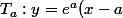 faux! déjà pour être rigoureux , ça ce n'est en rien une équation, c'est juste une formule qui veut pas dire grand chose tu dois écrire : T_a: y =e^a(x-a)+e^a et pour la deuxième T_b: y =-e^{-b-1}a(x-a)+e^{-b-1} J'ai choisi a et b qui sont pas forcement égaux !raison de plus que les...